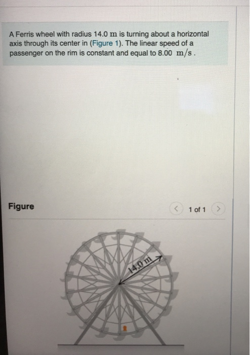 Solved Constants A Ferris Wheel With Radius 14 0 M Is Turning About A Horizontal Axis Through Its Center In Figure 1 The Linear Speed Of A Passenger On The Rim Is Constant And